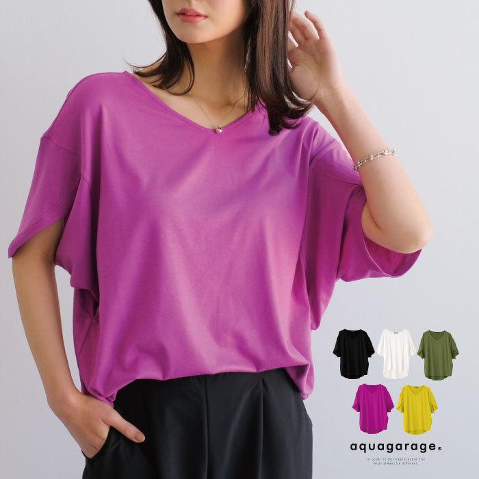 カットソー レディース ビッグシルエット Vネック 半袖 トップス 春夏 ブラック ホワイト グレー カーキ ベリー イエロー Aquagarage アクアガレージ 通販 Paypayモール