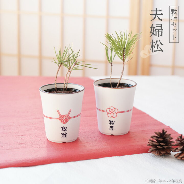 黒松 赤松が育てられる夫婦松栽培セットはインテリアにも 陶器の鉢にお2人のお名前を入れ 特別な贈り物に 両親 ペア ミニ盆栽 室内 プレゼント 名入れ 縁起木 栽培セット 夫婦松 盆栽 松 キット 栽培キット おしゃれ 名前入り お父さん お母さん 還暦祝い 古希 喜寿 米寿